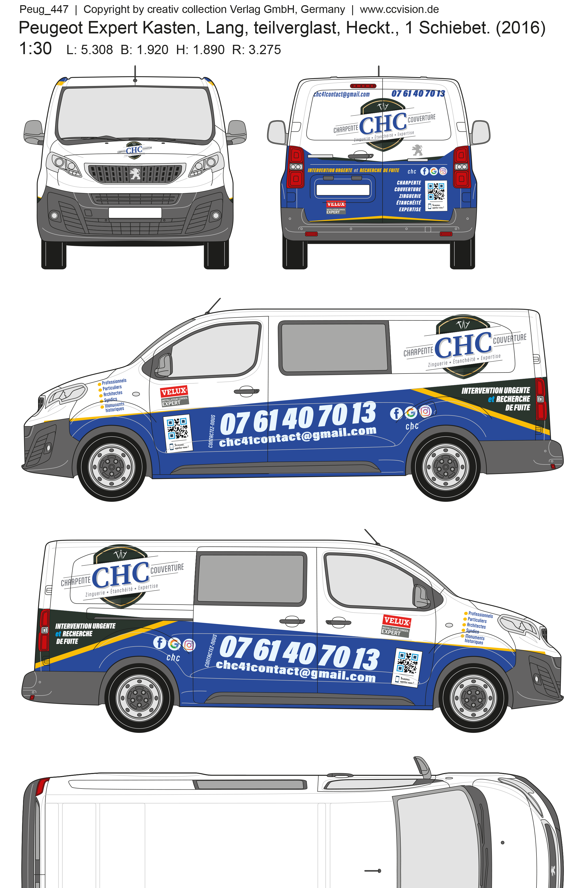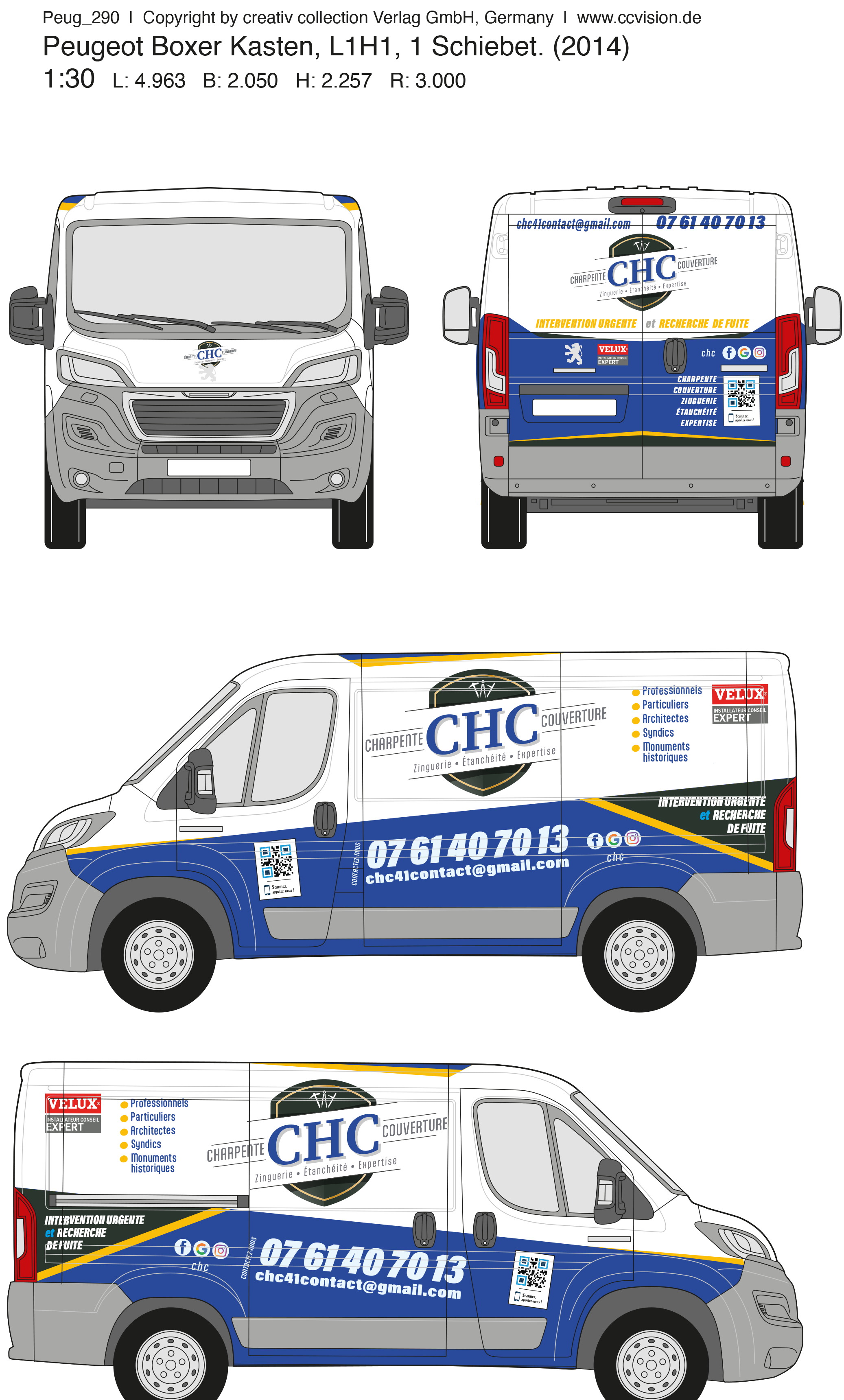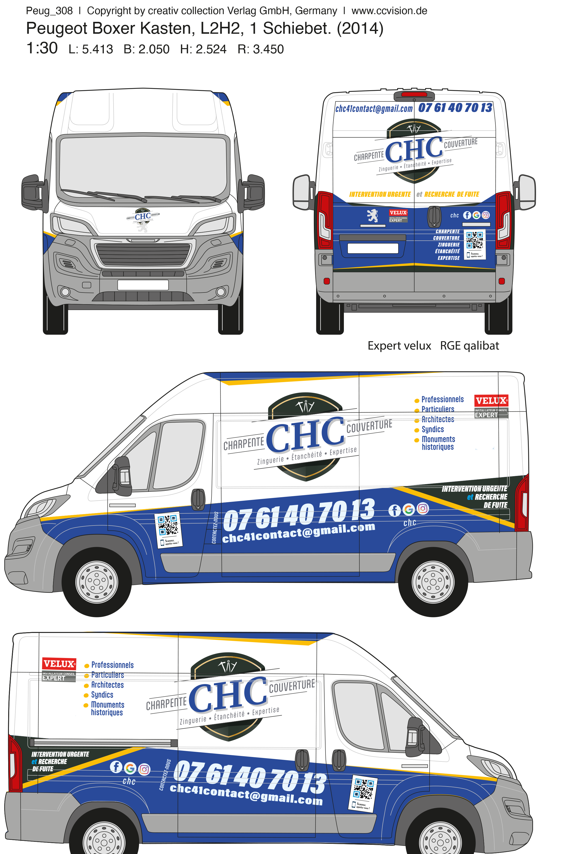 #2024, la société CHC Toitures me confie la création graphique qui habillera sa flotte de véhicules.