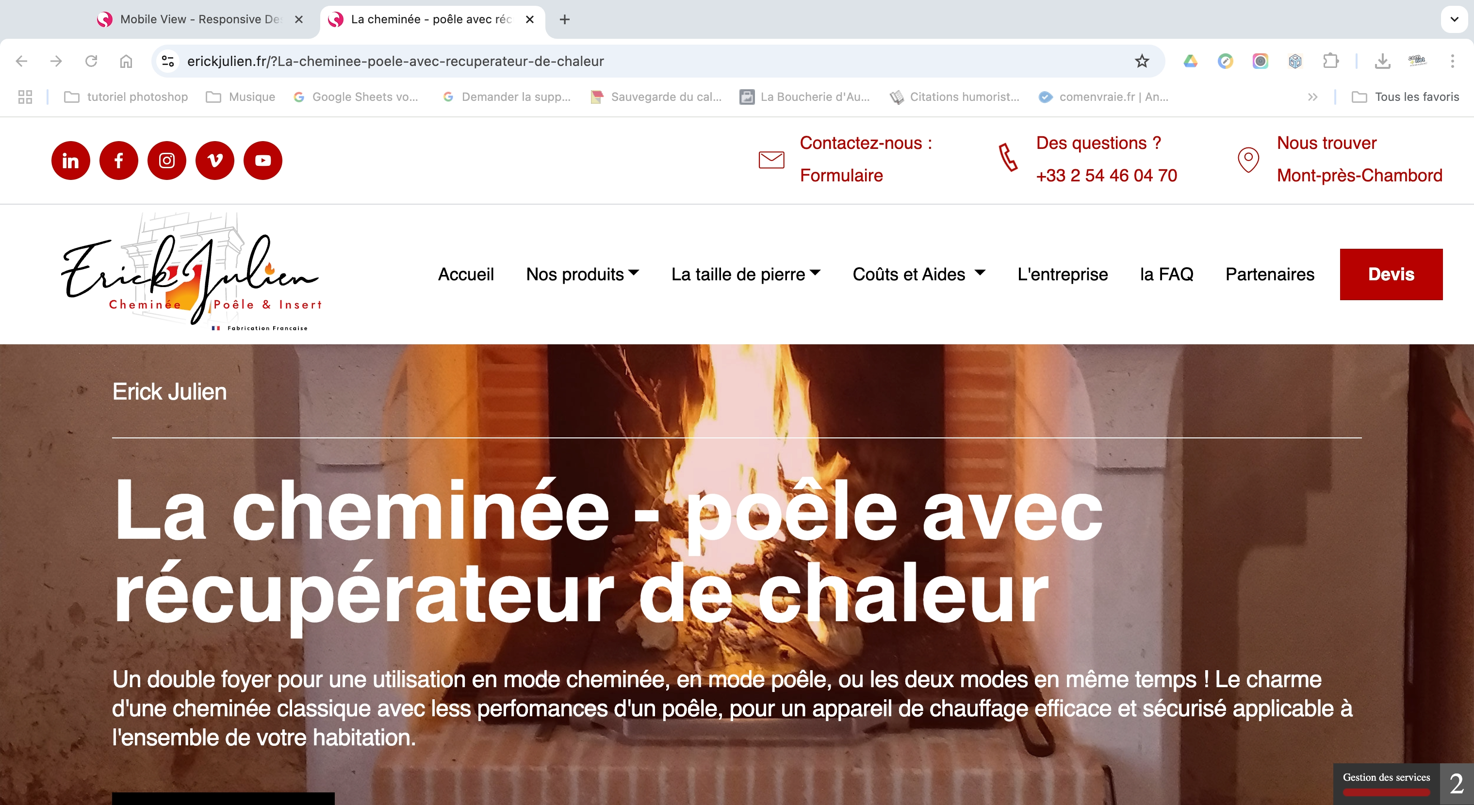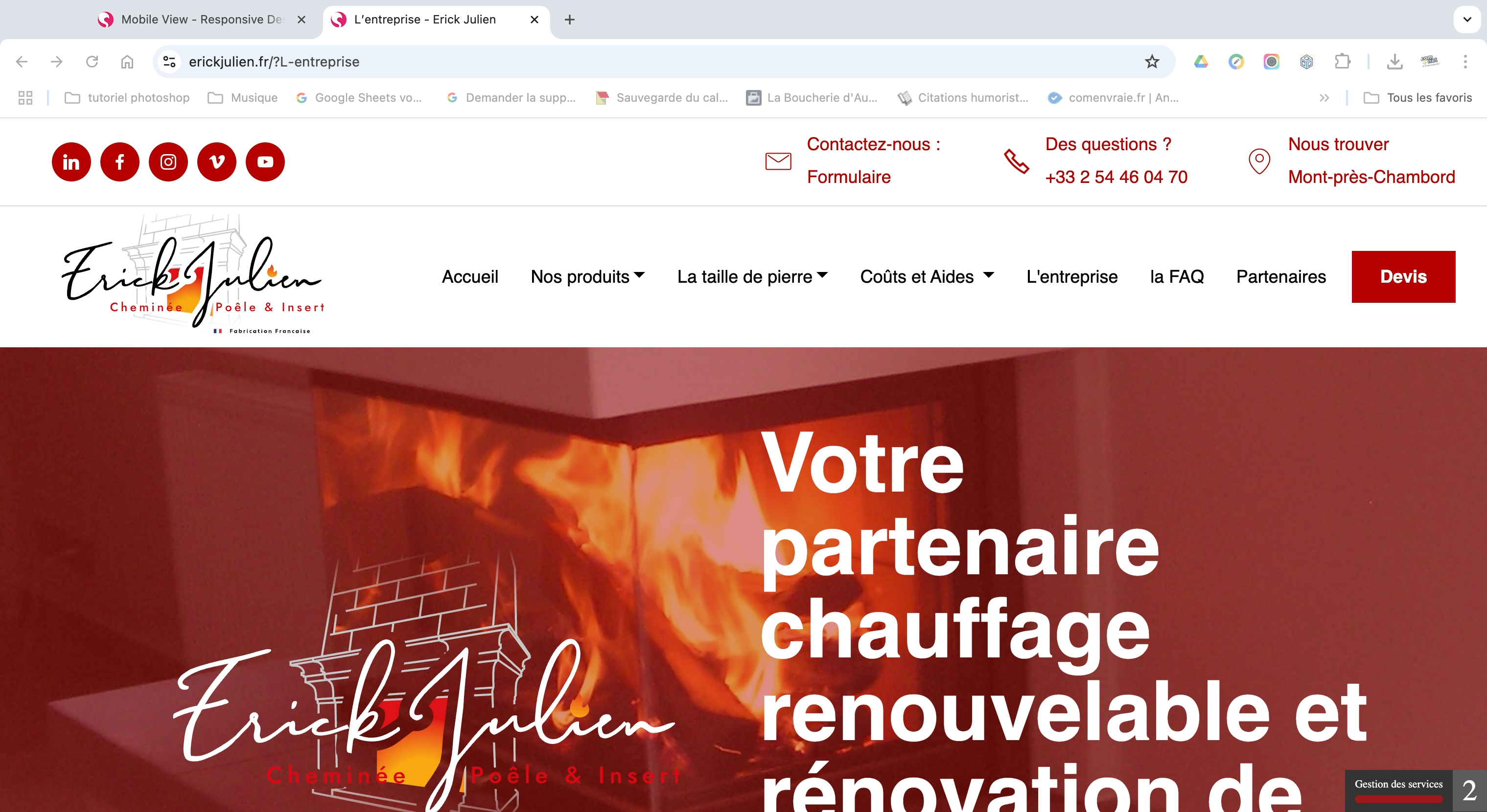 Suite à la réalisation de leur logotype d’entreprise, création d’un site web vitrine pour valoriser les activités artisanales de l’entreprise Erick Julien, spécialisée en chauffage au bois et en taille de pierre traditionnelle à Mont-près-Chambord (41).